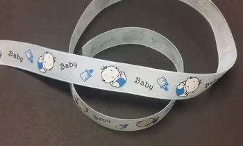 Grosgrain med tryck, 25mmx1m, Blue Baby 740610